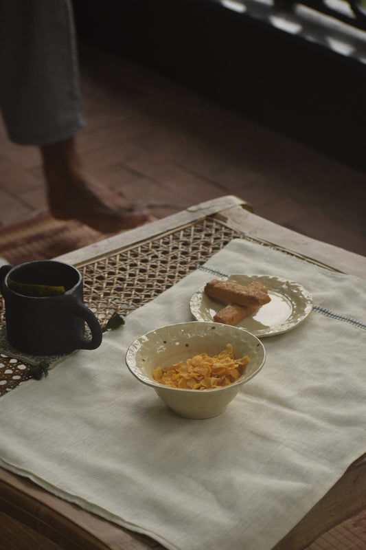 Soofian is a reminder to embrace the romanticism of staying indoors while the world outside bustles on. With this collection we bring you luxurious textiles in the form of bed and table-linens, an array of cushions and throws in our signature muted palettes and tones and for the first time ever, an entire series of home fragrances- Tula Aromatics.