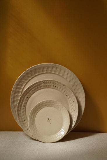 Each piece is coiled and pinched, owning distinct character and slight variations, making them truly one-of-a-kind, while a neutral color palette and subtle textures add an understated charm.