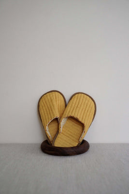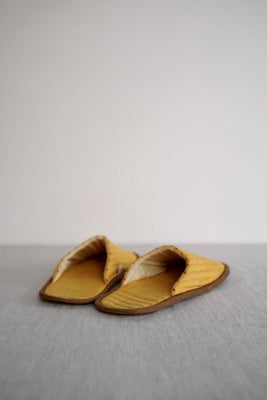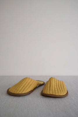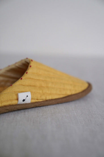 Handwoven linen, quilted with organic cotton and finished with a luxurious silk lining - the Ciel Jeune bedroom slippers are a little bit of sunshine on your feet. Great for everyday use, perfect for travel.