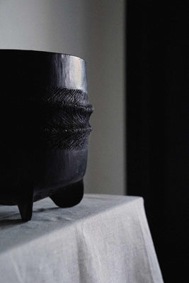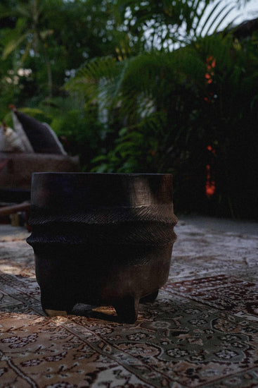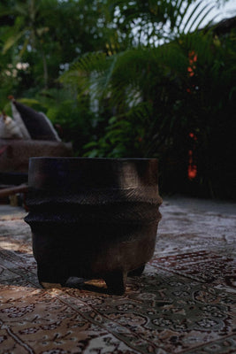 Made with serpentine clay local to the Ukhrul district of Manipur, the planter is naturally black due to their volcanic nature whereas the metallic sheen is developed by polishing the fired pieces with leaves of the Chirona plant.
