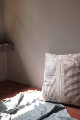 The Tula Injiri Cushions aren’t original madras checks, they aren’t even close- however they rely heavily on the history of this checkered textile, and its rise to the status of royal robes and eventual fall from grace as the choice of apparel for plantation workers in West Africa. We have made simple cushions, humble everyday cushions that can be washed and rewashed and fading of which will only make them more charming, just like their historical counterparts.