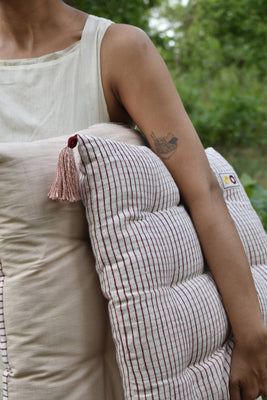 The Tula Injiri Cushions aren’t original madras checks, they aren’t even close- however they rely heavily on the history of this checkered textile, and its rise to the status of royal robes and eventual fall from grace as the choice of apparel for plantation workers in West Africa.