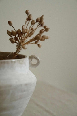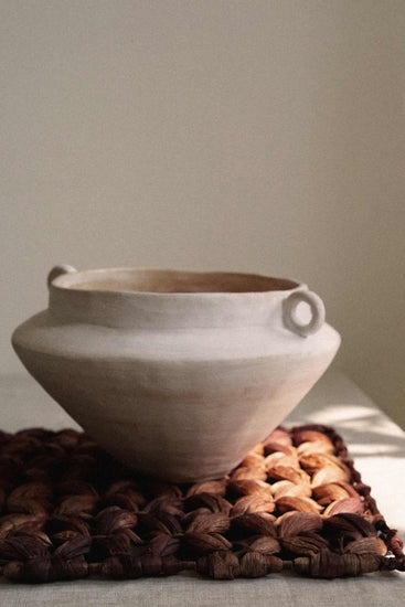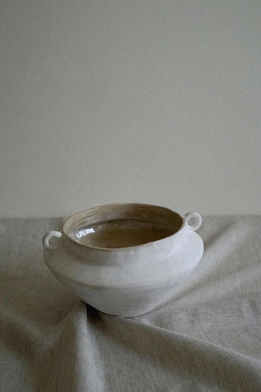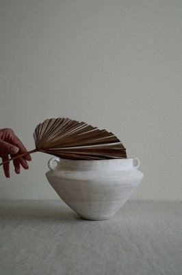 Hand-coiled and glazed with a porcelain slip, the Kalash is a quiet nod to the voluptuous form of the Greek Krater; use as a table-top urli, a vase, or even just like so.