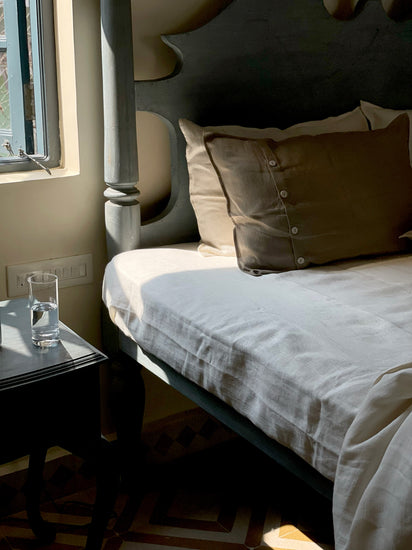 Derived from flax plants, Raatri, a linen bedding essential is designed to bring simplicity, sophistication, and comfort to your bedroom. Pared down to ‘just the basics,’ and focusing entirely on quality, the Raatri is made with 60 count linen in a gorgeous twill weave that keeps you cool in warm weather and cozy during cooler nights ensuring a good night's sleep.