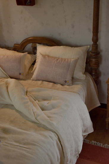 Derived from flax plants, Raatri, a linen bedding essential is designed to bring simplicity, sophistication, and comfort to your bedroom. Pared down to ‘just the basics,’ and focusing entirely on quality, the Raatri is made with 60 count linen in a gorgeous twill weave that keeps you cool in warm weather and cozy during cooler nights ensuring a good night's sleep.