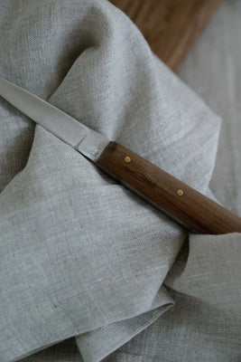 The Rasoi Pairing knife is hand-forged by blacksmiths in Reha, Gujarat, and finished with an oiled teakwood handle and brass rivets. A dying art, Reha black-smithery was once renowned for producing swords and weaponry for the Royal families of the region. Tula’s range of kitchen knives preserves their traditional techniques and finds them a relevant place in our every day.