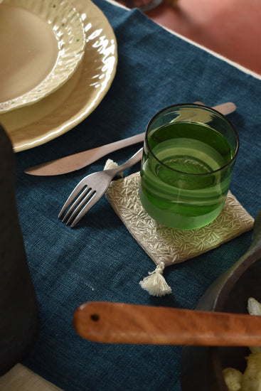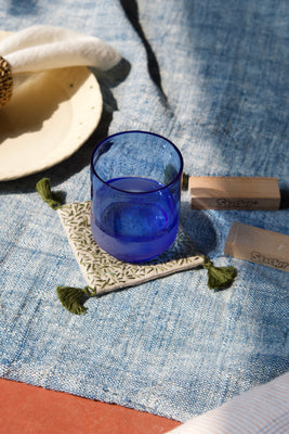 The perfect everyday glass, simple, clean lines that blends effortlessly into your tablescape. Made in handblown borosilicate, by glass artisans of Firozabad