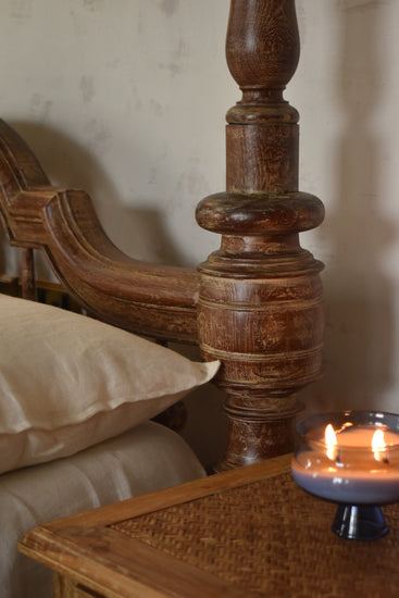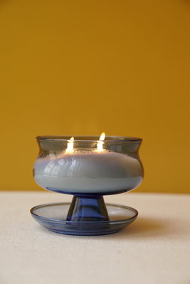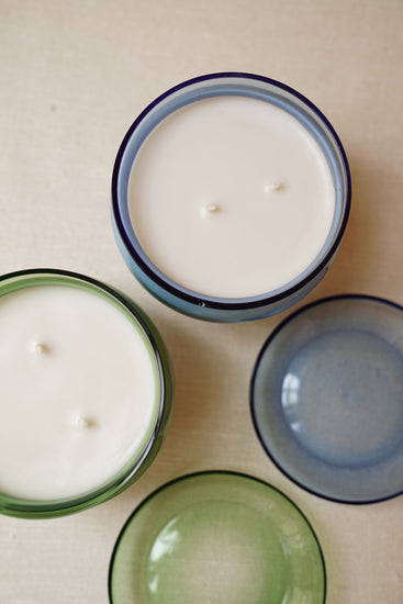Made in the historical city of Firozabad using borosilicate glass, the Sangandhat candle is a voluptuous container for your new favourite candle. Made using our signature blend of coconut and soy wax, Sagandhat is available in two delightful fragrances that can complement each other perfectly. Neelam is an evening breeze, musky and heady, with notes of white-flower and citrus. Light individually or both at once to create a delicious marriage of fragrances.