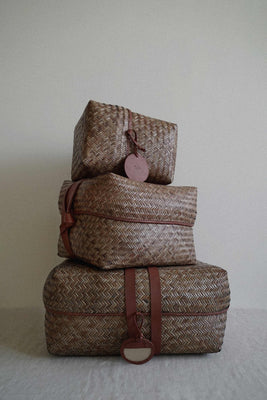Handwoven in Dala and finished with vegetable tanned leather, the SANDOOK boxes are wardrobe organisers like none other.