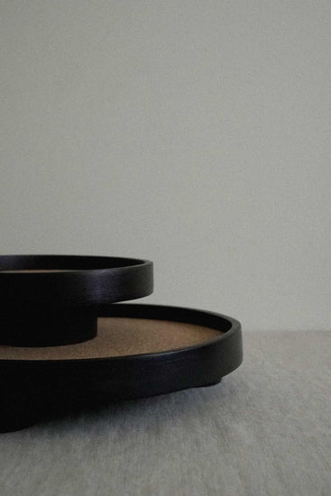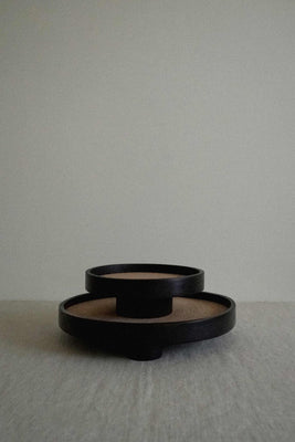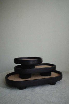 Composed of steam bent bamboo and stained to a rich black finish, the SUB KUCH series of trays comes in 4 sizes.