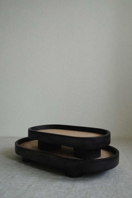 Composed of steam bent bamboo and stained to a rich black finish, the SUB KUCH series of trays comes in 4 sizes.