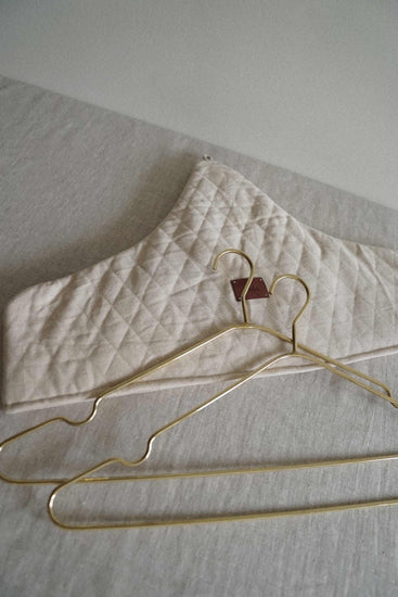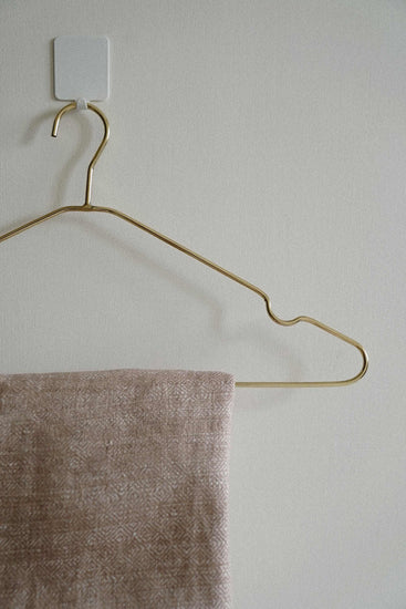 Fashioned after the aluminium hangers popularly used by dry cleaners in the 80s and 90s, the TAAR hangers have a comfortable familiarity to them. Hand-bent with a 4 1/2 mm brass wire and polished to a glossy mirror finish, these hangers are a simple luxury for the everyday.