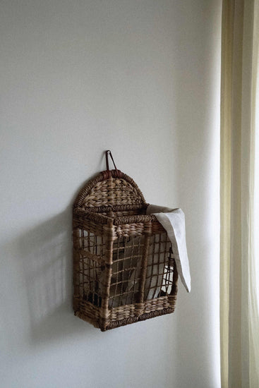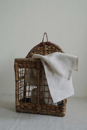The TOKRI organiser is made with water hyacinth and cane, and finished with vegetable tanned leather trims. Hang it in the kitchen, use as a magazine rack, put some flowers in it, or use to organise your shoes!