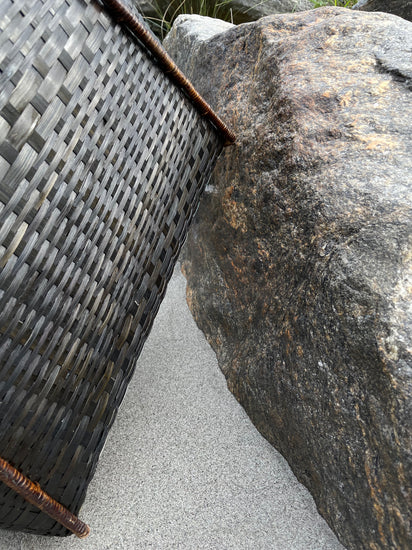 The UNGMA basket is a multi-utility object that encourages the practice of traditional basketry. Bring it to a picnic, take it to the market, use decoratively with a bunch of dried flowers, or even as a fashionable magazine holder by the sofa.